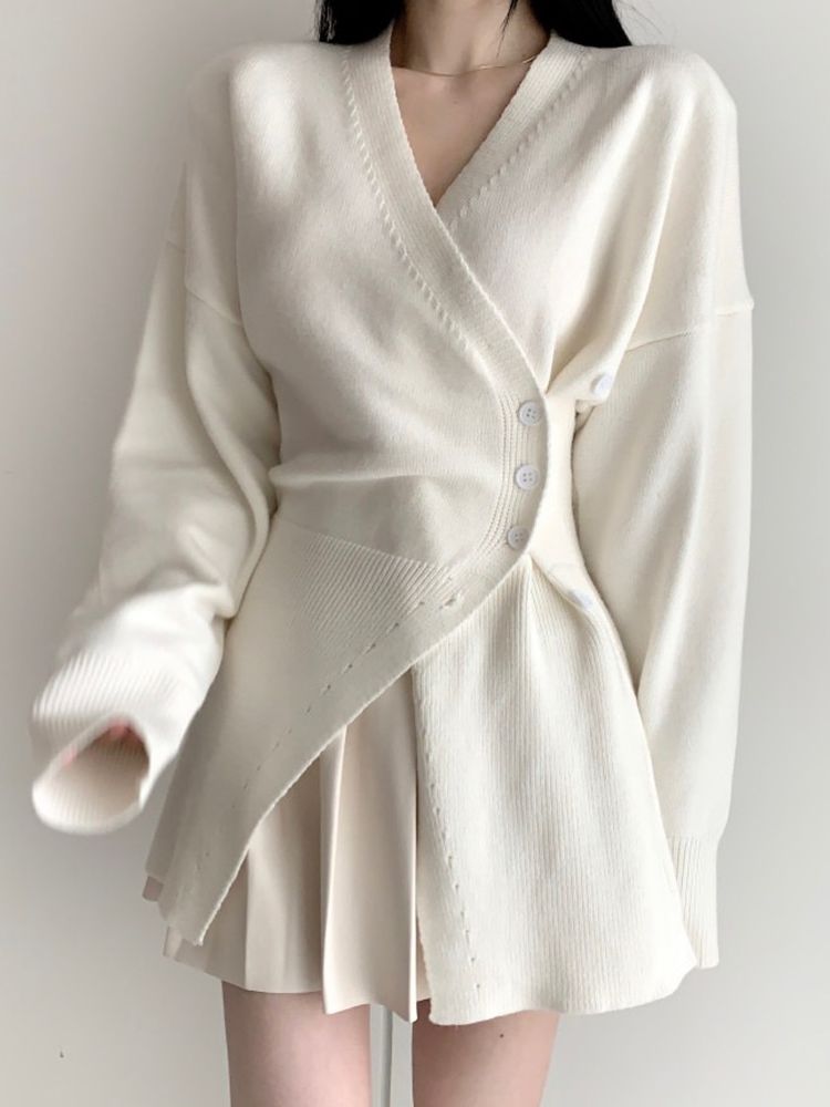 [DE818]리지 사이드 버튼 슬림 니트가디건