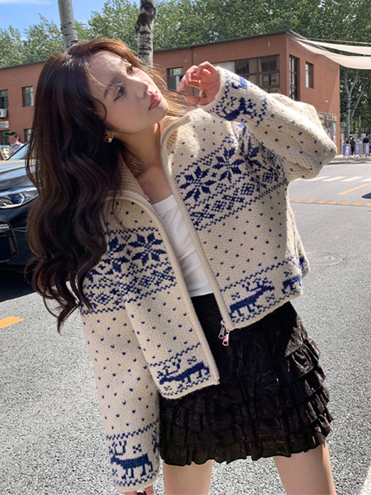 [DE836]노르딕 눈꽃 집업 니트 가디건