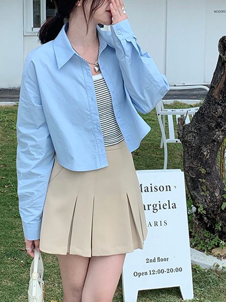 [BC132]서본즈 허리 스트랩 크롭 셔츠