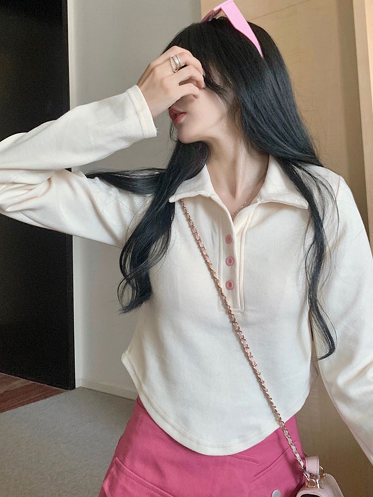 [BC818]핑크 버튼 밑단 라운드 티셔츠