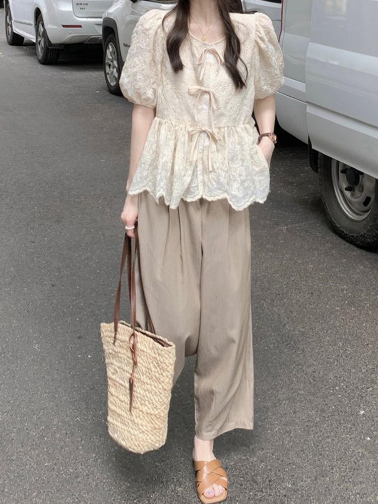 [CD425]제제 블라우스+9부 와이드팬츠 세트
