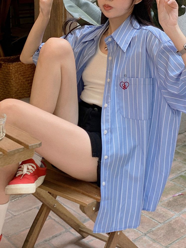 [CD496]러브 스트라이프 루즈핏 반팔 셔츠