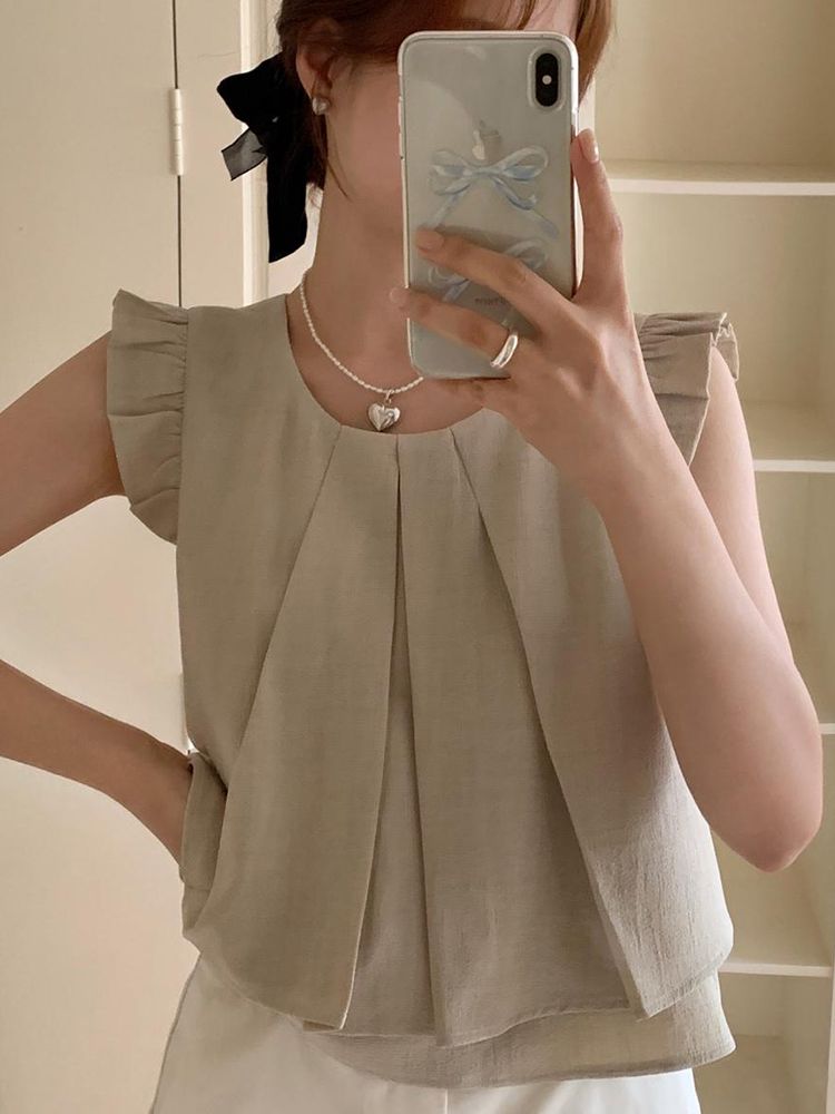 [CD556]싱글 뒤트임 핀턱 프릴 나시 블라우스
