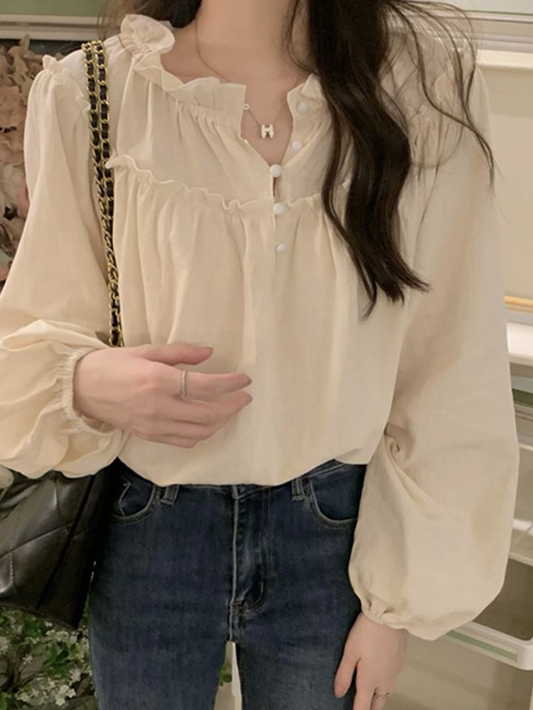 [CD940]리나 콩단추 프릴 블라우스