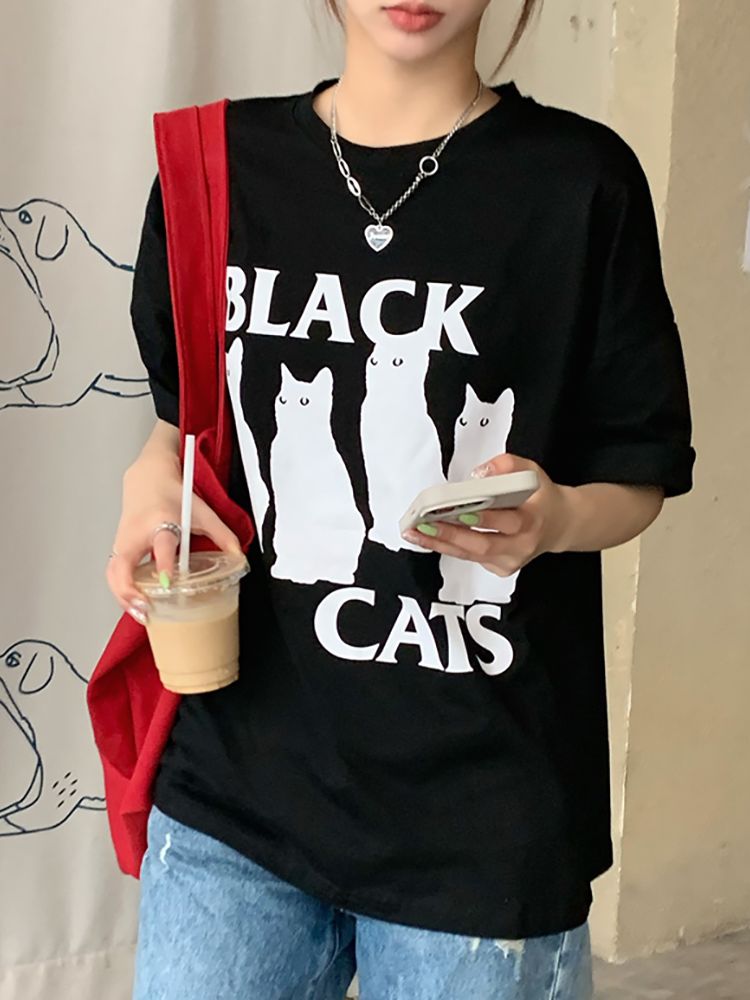 [DE372]블랙캣 고양이 반팔 티셔츠