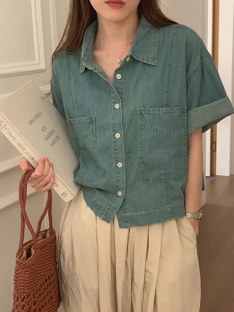 [DE433]어게인 데님 반팔 셔츠