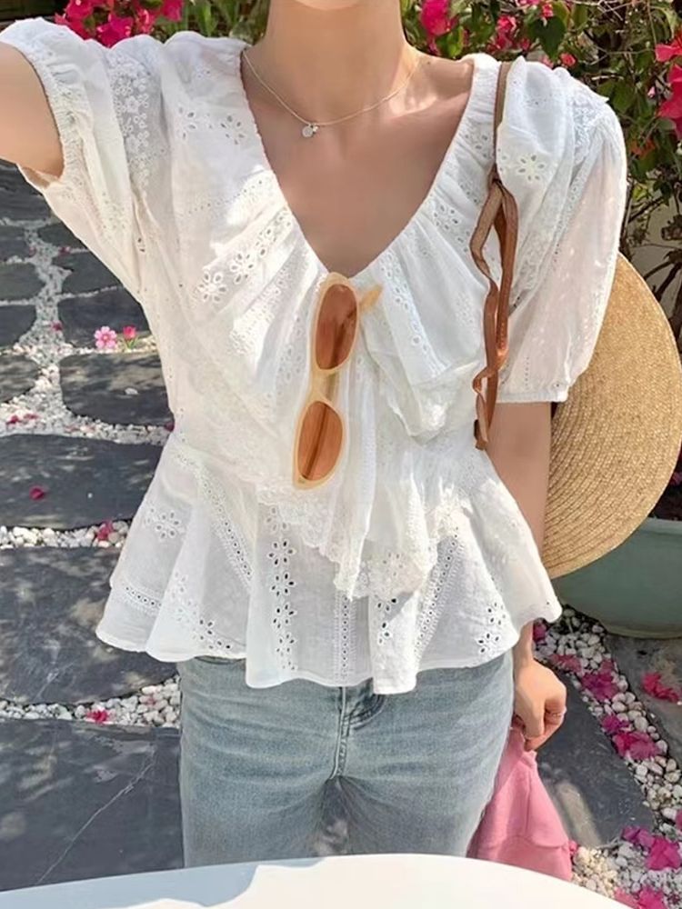 [DE589]오르골 펀칭 레이스 블라우스