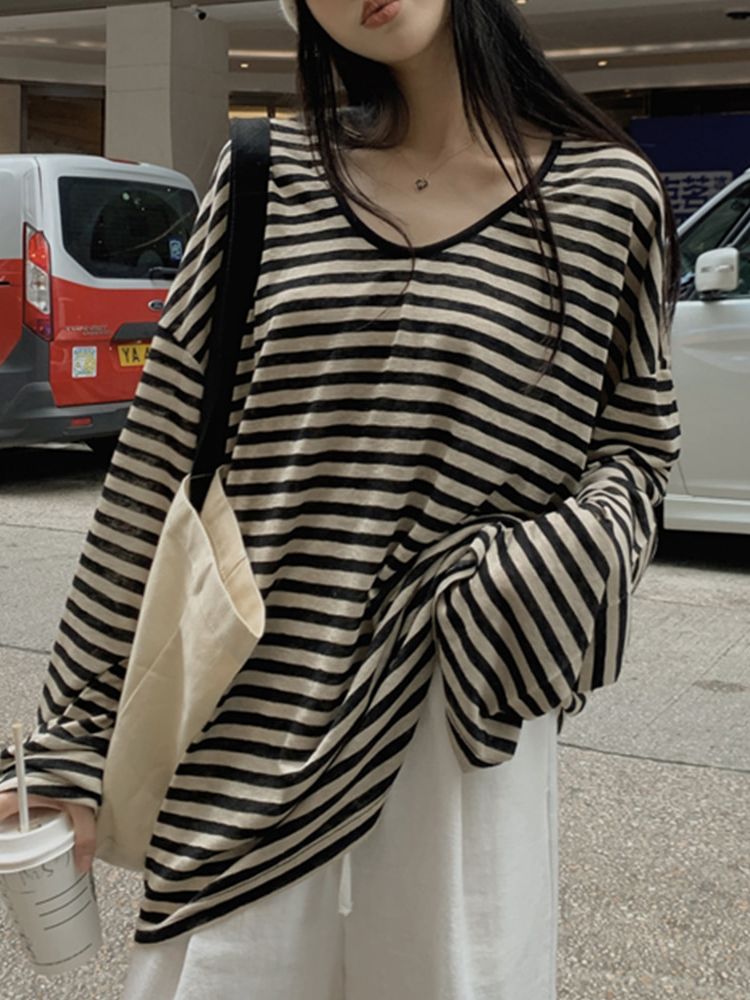 [DE668]로로 루즈핏 스트라이프 긴팔티셔츠