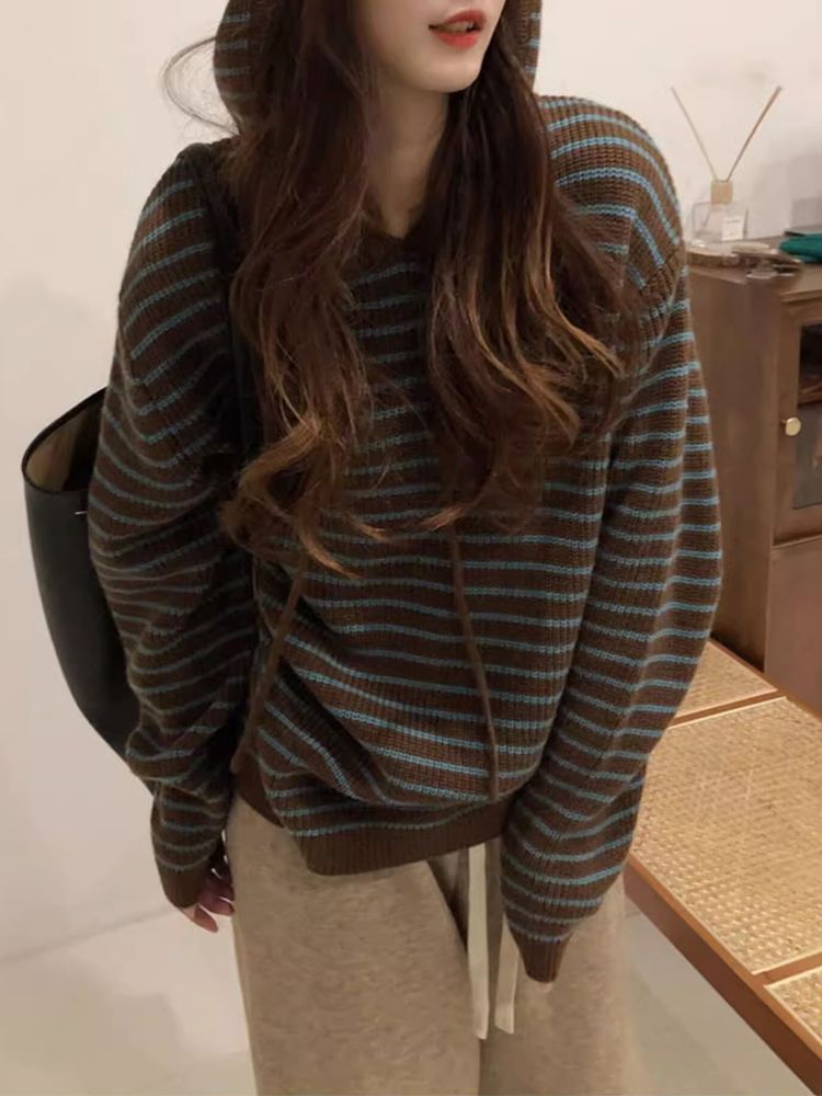[DE813]케일라 스트라이프 후드 니트