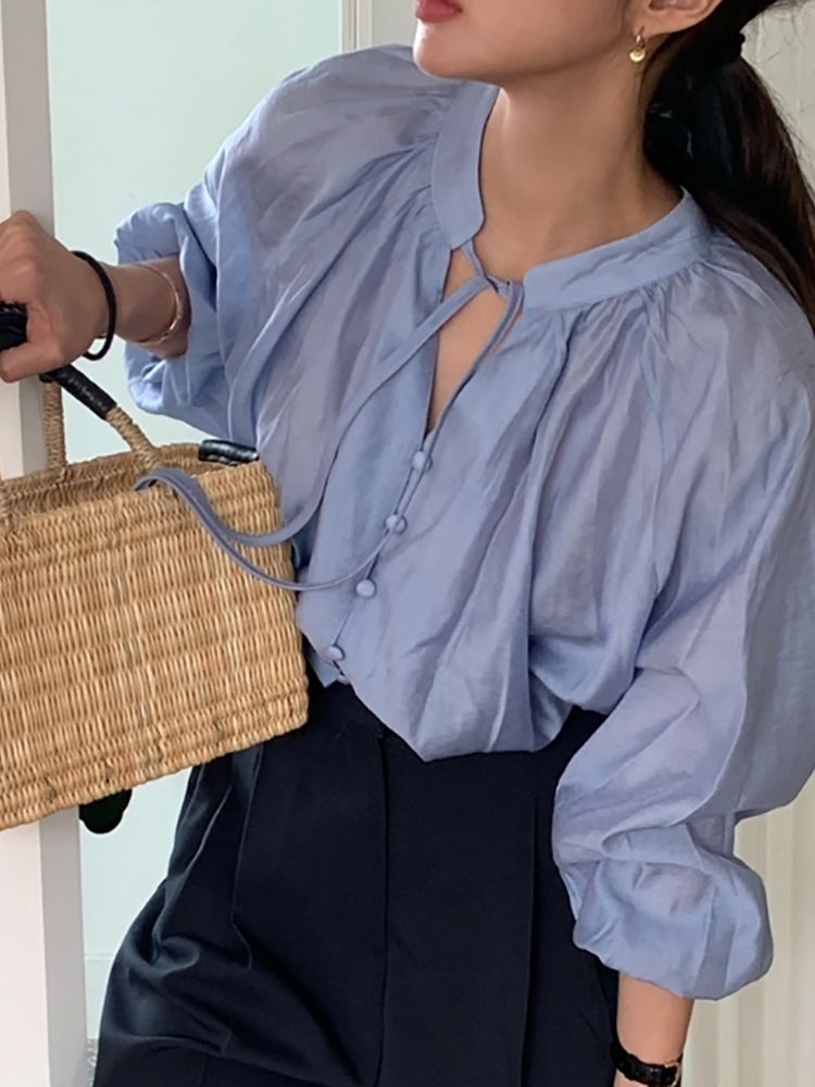 [DE964]밀리 콩단추 브이넥 블라우스