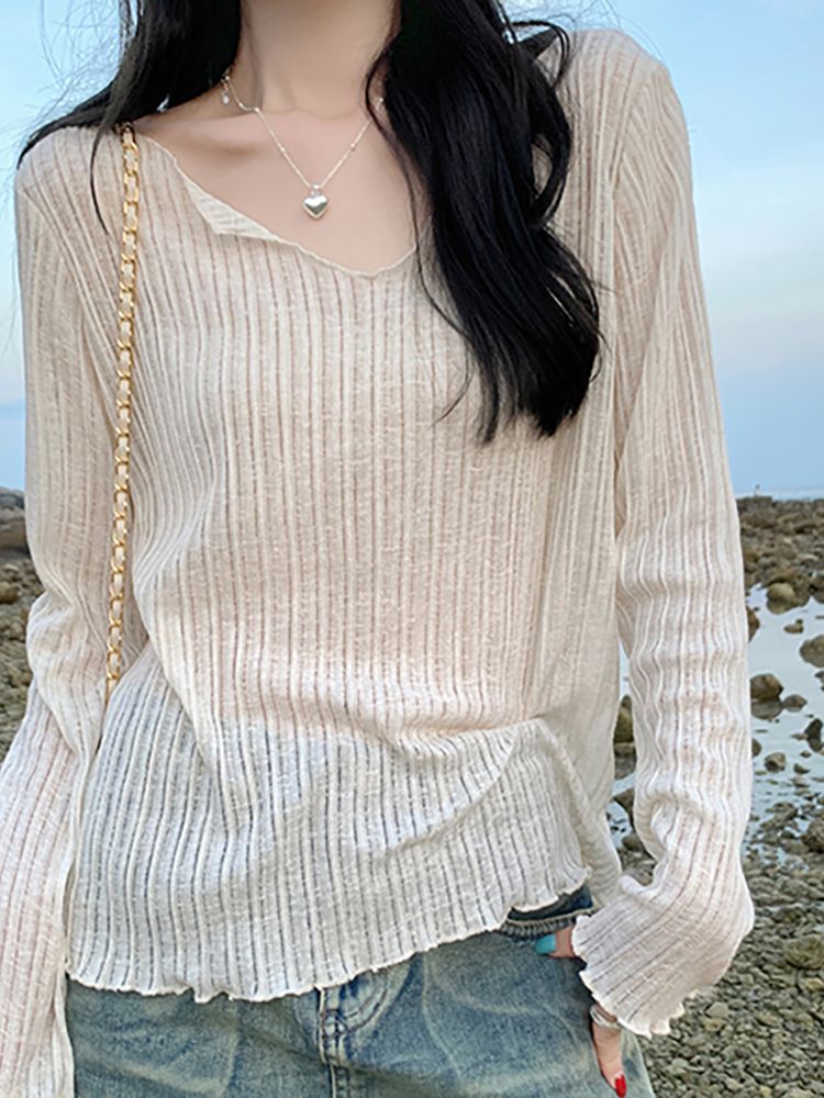 [DE984]여리여리 시스루 썬 긴팔티셔츠