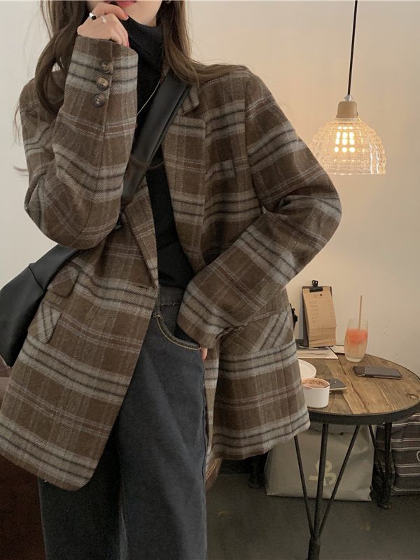 [NU696]런던 루즈핏 모직 체크자켓
