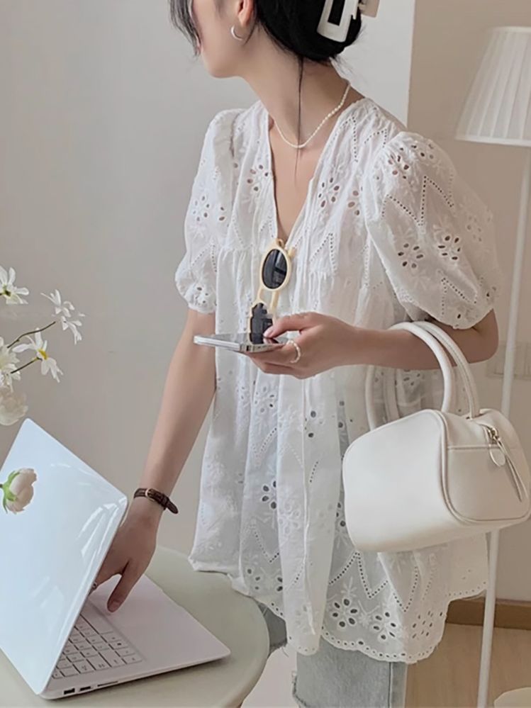 [EF023]엔지 펀칭 퍼프 블라우스