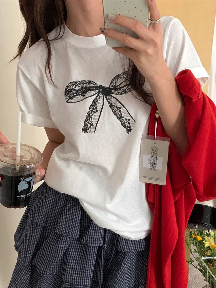 [EF045]시에나 리본 프린팅 반팔 티셔츠