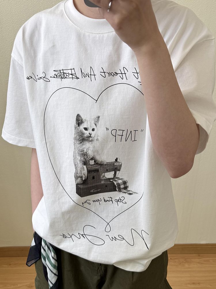 [EF060]인프피 고양이 루즈핏 반팔티셔츠