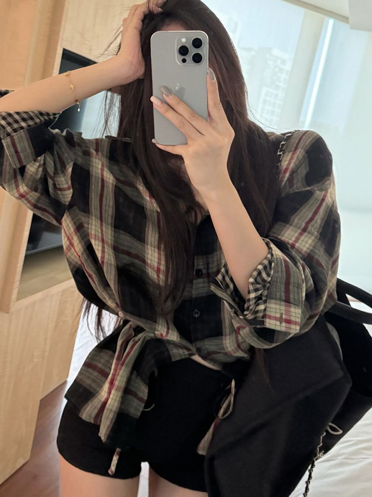[EF065]말로우 셔링 체크 셔츠