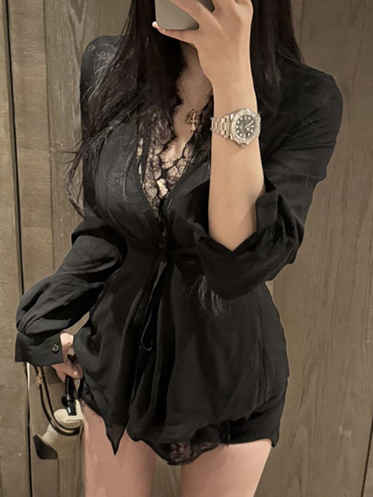 [EF066]오데트 레이스 쉬폰 블라우스