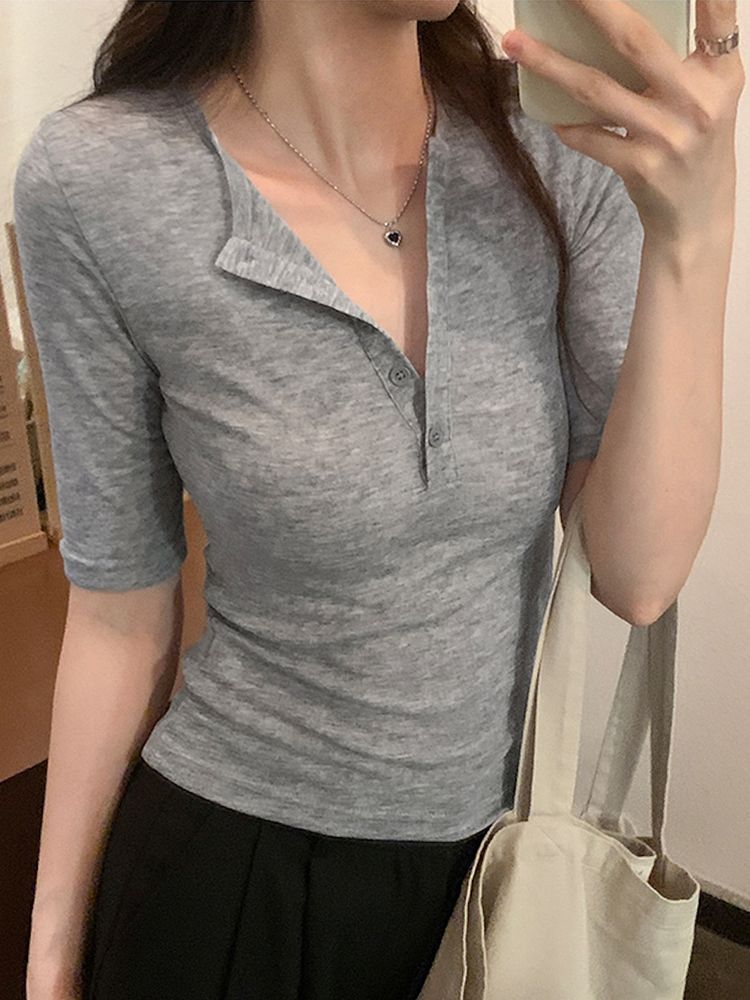 [EF137]또또 버튼 슬림핏 티셔츠