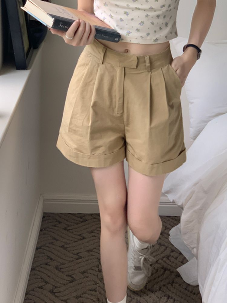 [CD525]베이직 코튼 핀턱 롤업 반바지