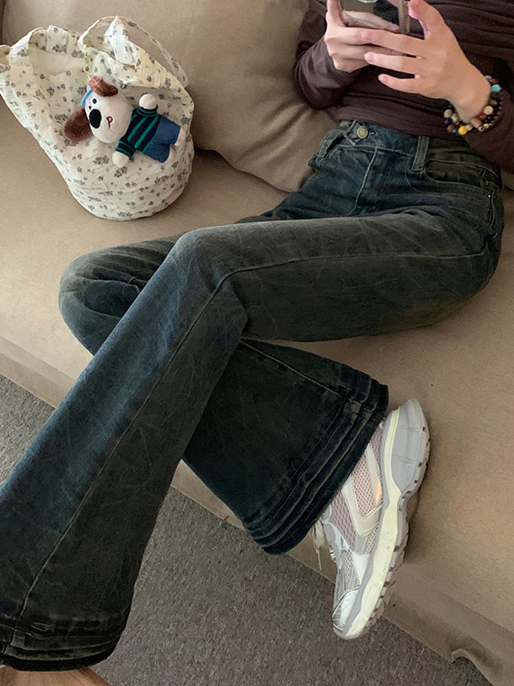 [CD882]커밍 워싱 부츠컷 데님팬츠