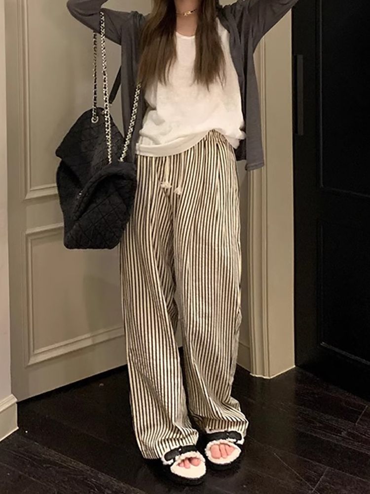 [DE547]컨투어 스트라이프 지지미팬츠