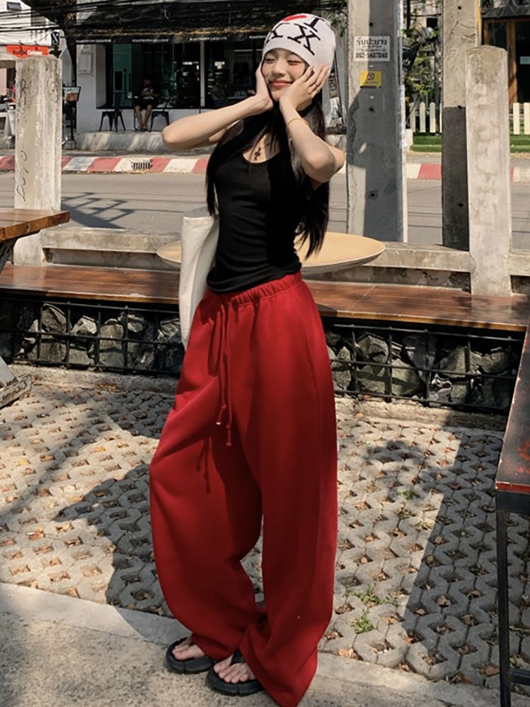 [EF038]레드 와이드 밴딩 팬츠