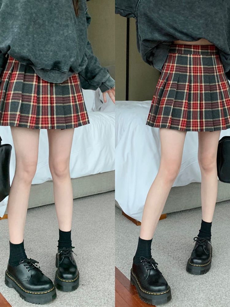 [DE143]비비 타탄체크 모직 플리츠 스커트