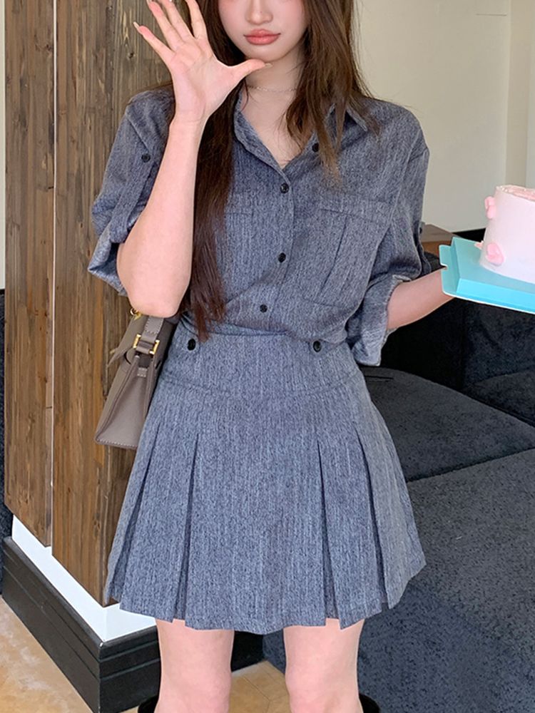 [DE393]트루 셔츠+플리츠 스커트 세트