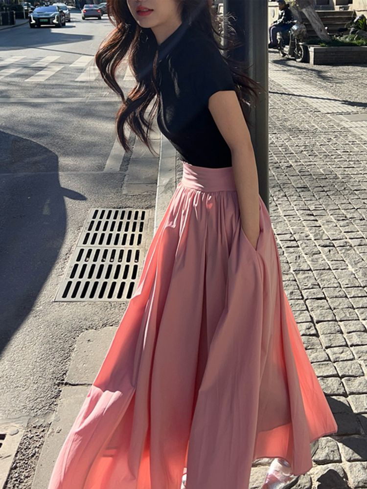 [DE658]플리 반목 폴라티+롱스커트 세트