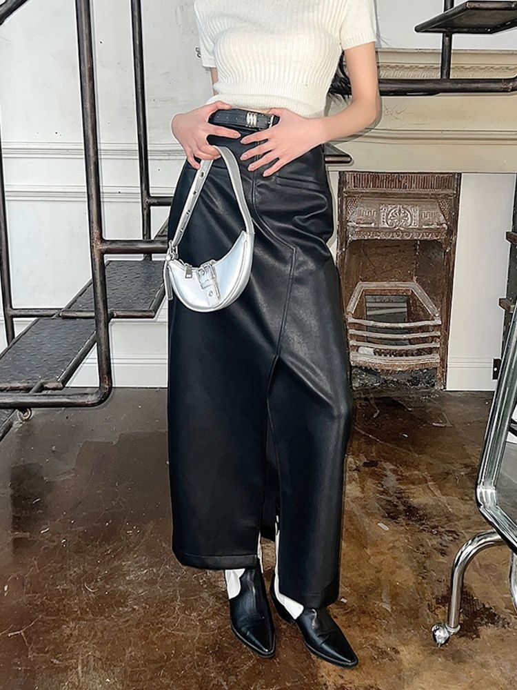 [DE700]헬렌 슬릿 레더롱스커트