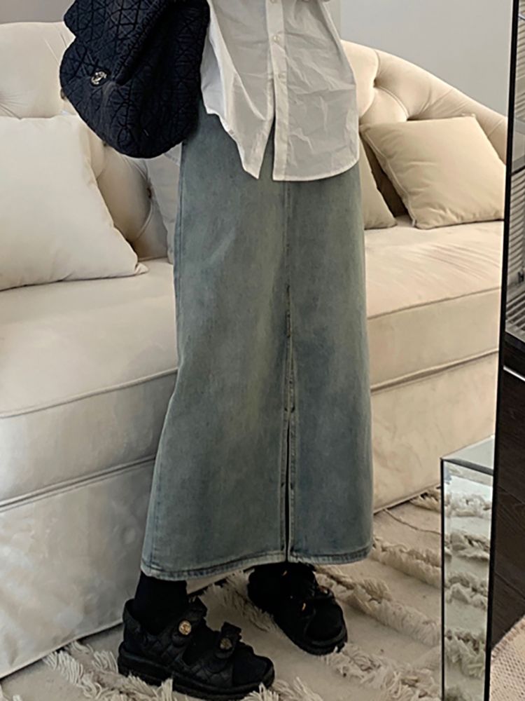 [DE955]빈티지 워싱 트임 롱데님스커트