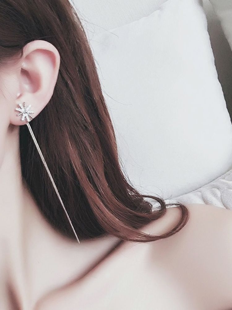[E084]해바라기 큐빅 포인트 체인 롱귀걸이