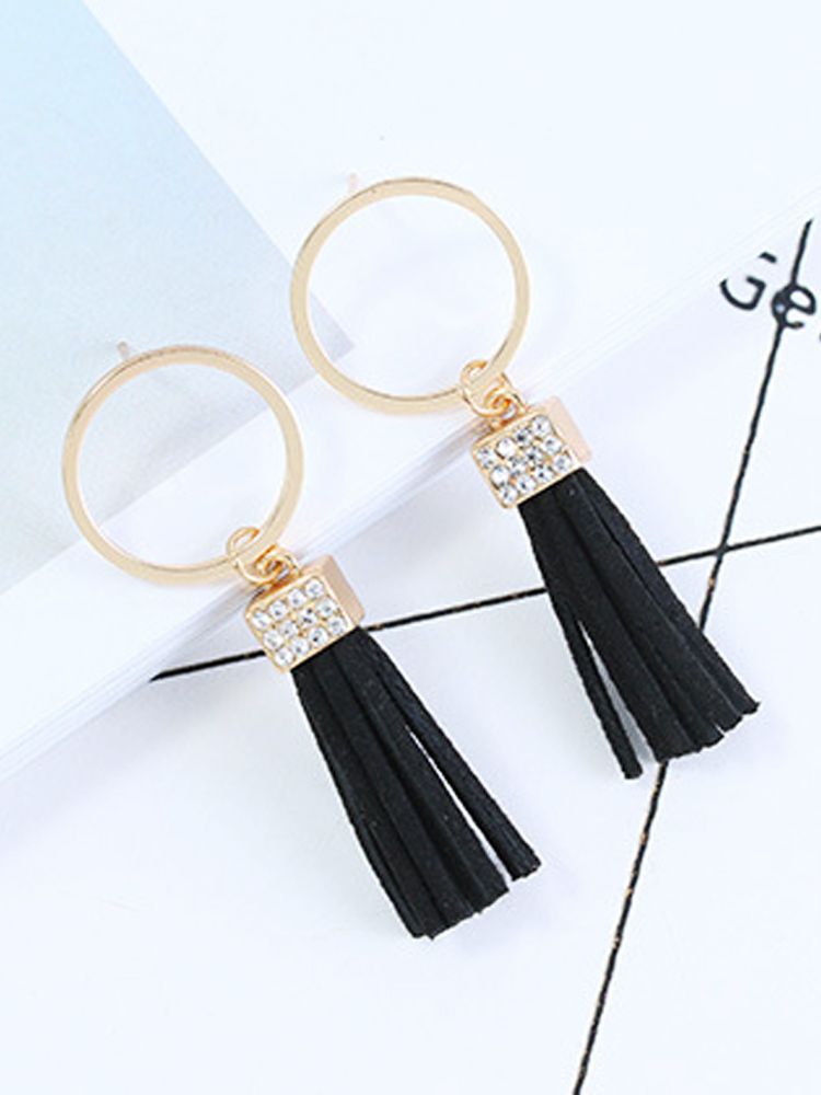 [E174]태슬포인트 큐빅 라운드 팬던트귀걸이