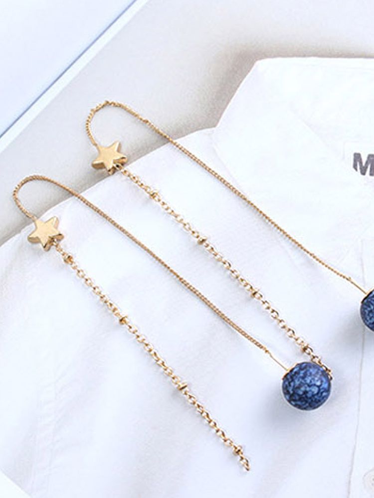 [E194]봄 라운드 팬던트 스타 롱귀걸이
