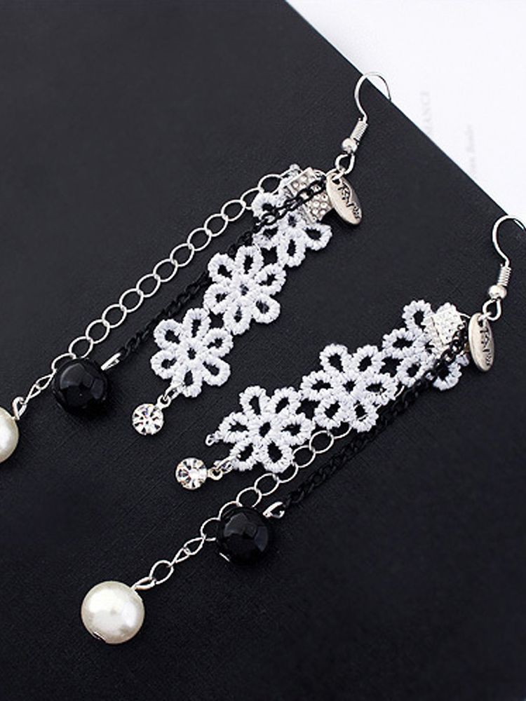 [ER122]플라워 자수 패턴 롱 체인 귀걸이