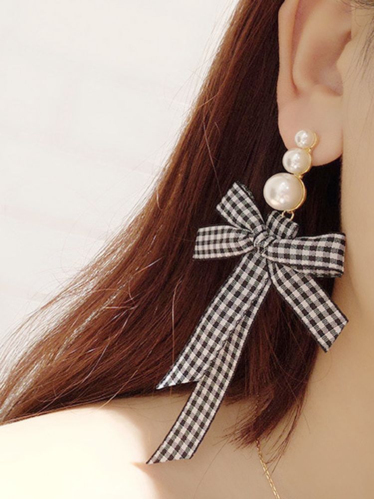 [ER407]하운드 체크무늬 리본 귀걸이