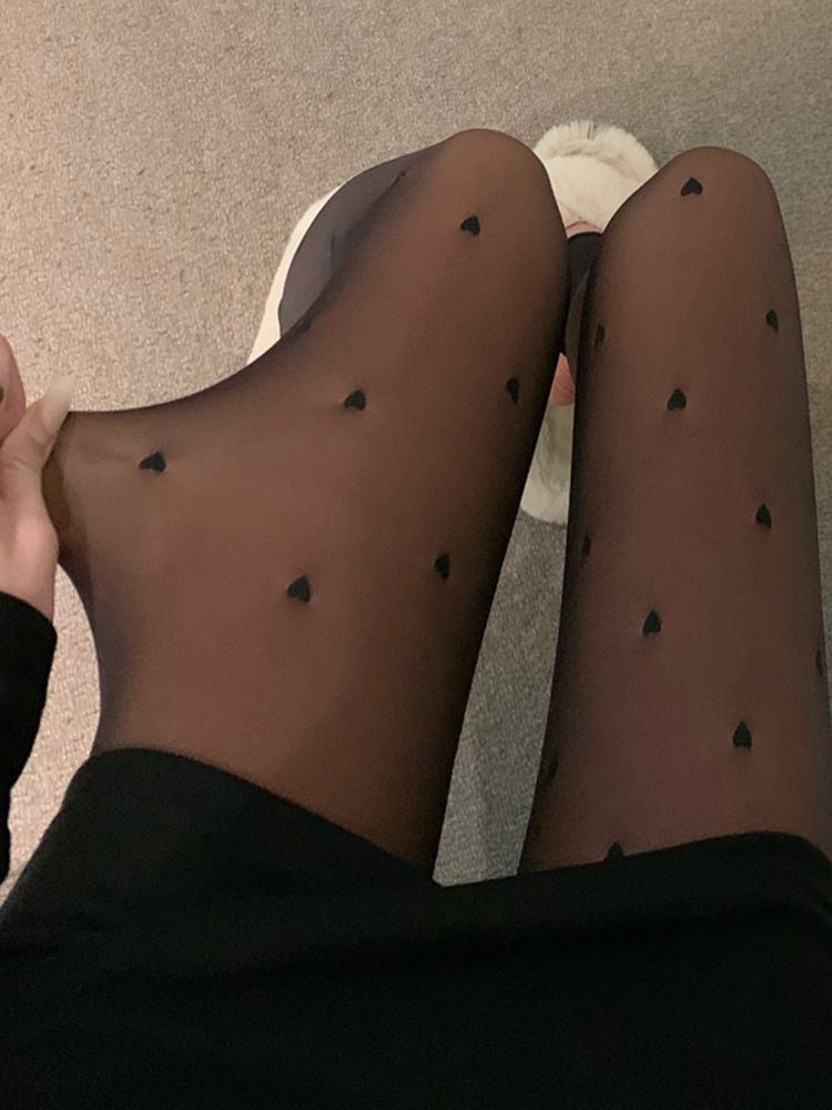[BC747]페이크스킨 하트패턴 두툼스타킹