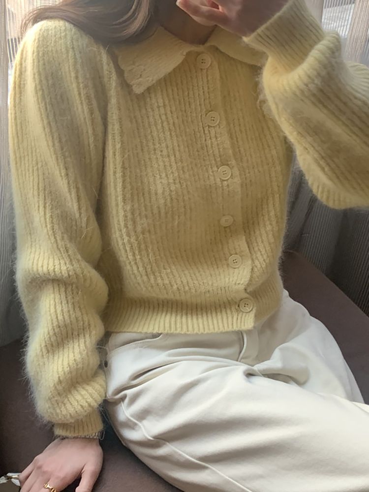 [DE222]소프티 카라 니트 가디건