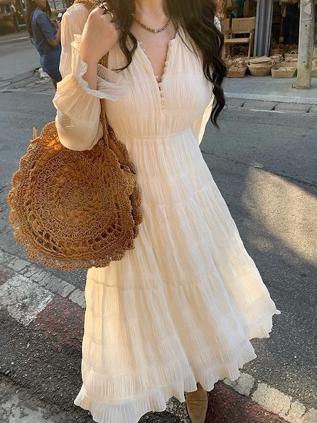 [BC861]레이크 무드 주름 롱 원피스