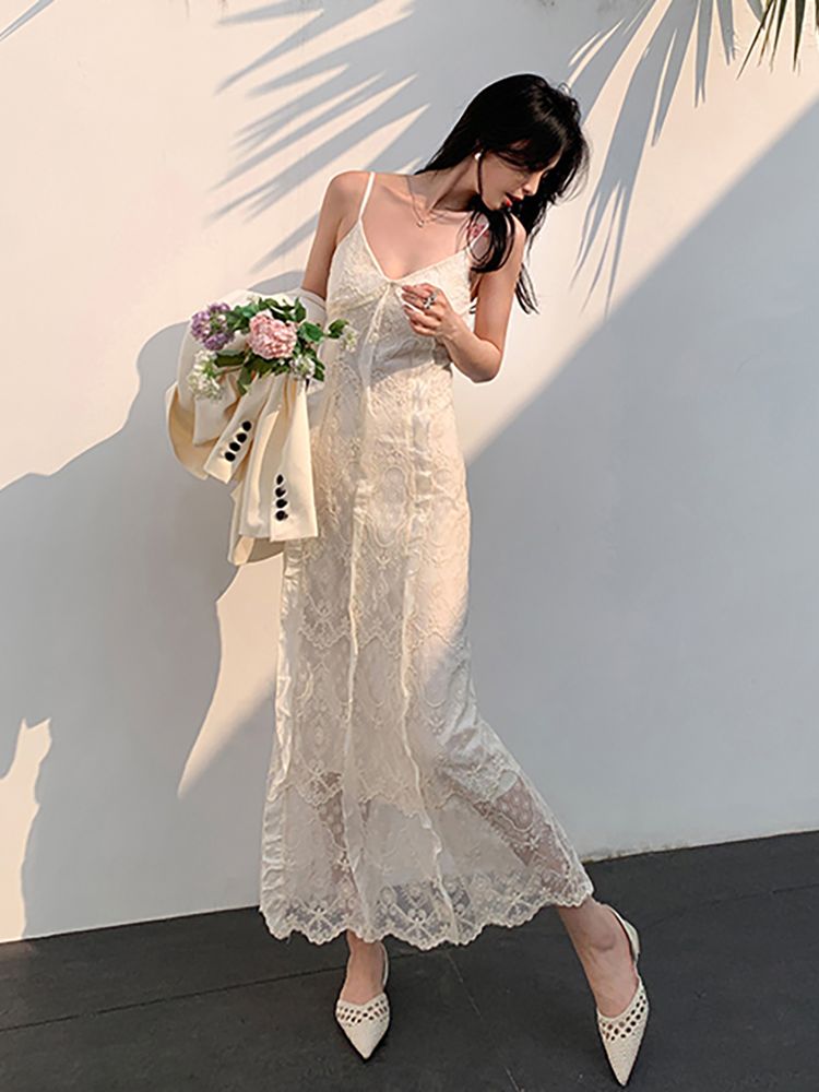 [CD113]슬링 레이스 뷔스티에 롱원피스