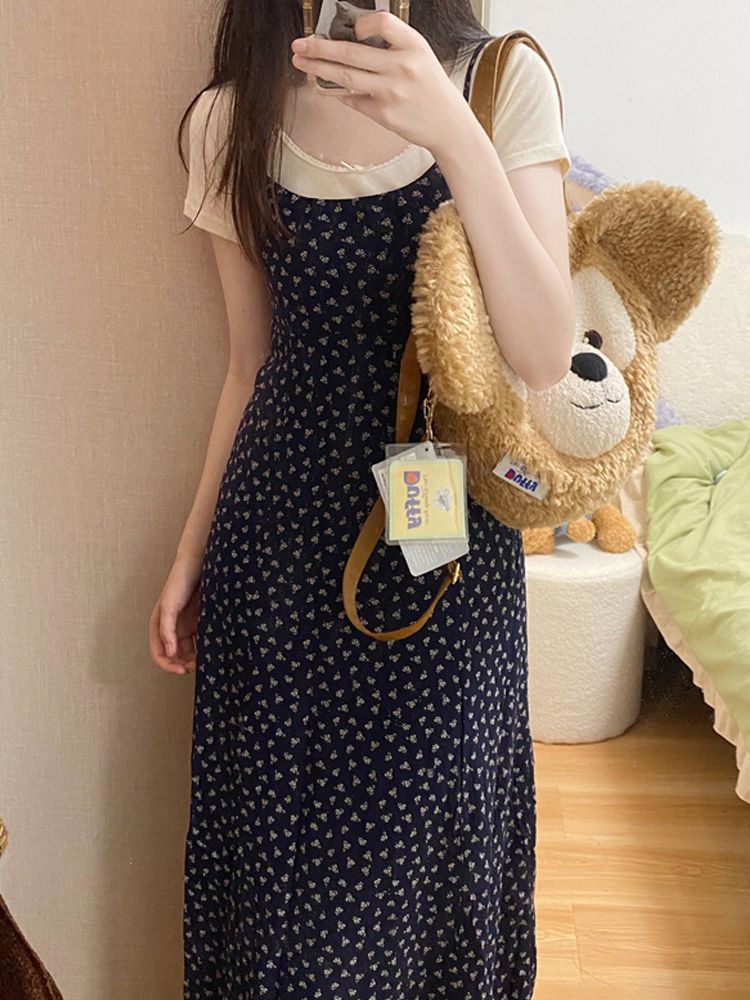 [CD491]잔꽃 레이어드 끈나시 롱 원피스